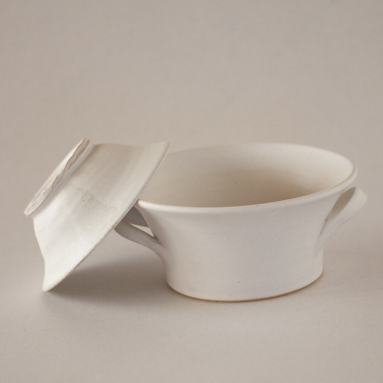 煮物を入れレンジで温め直すとか、サラダを作っておいてフタをしておき食べ始める直前にドレッシングを入れると美味しいです。 フタは皿として使えるように全面釉をかけてます。 取皿として、普段使いの皿としてもお使いください。色鮮やかな春の野菜がより一層美味しそうに見えます。